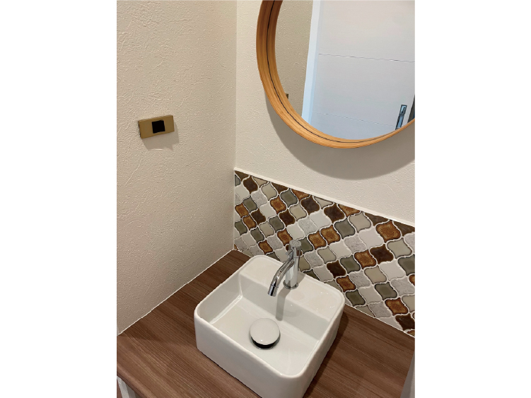 名古屋モザイクが映えるセカンド造作洗面台
